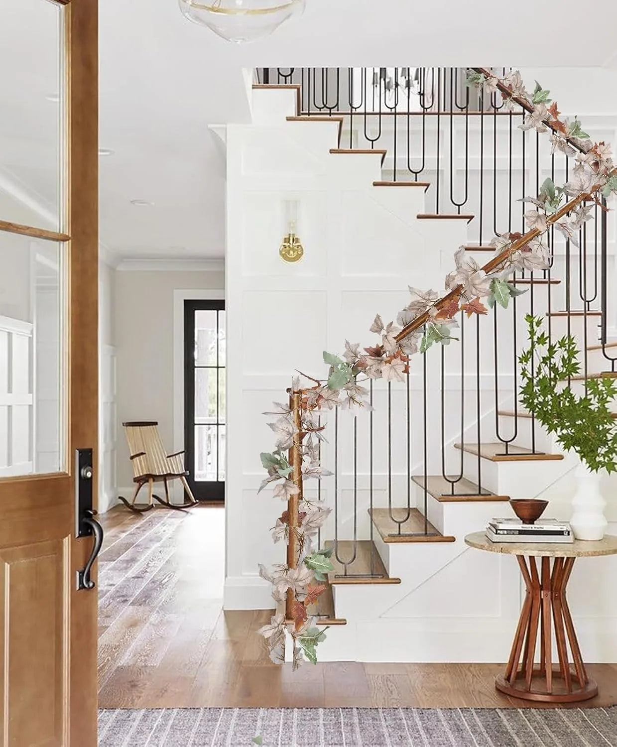 Create a warm, festive ambiance with a Maple Leaf Vine Garland duo that brings autumn indoors.