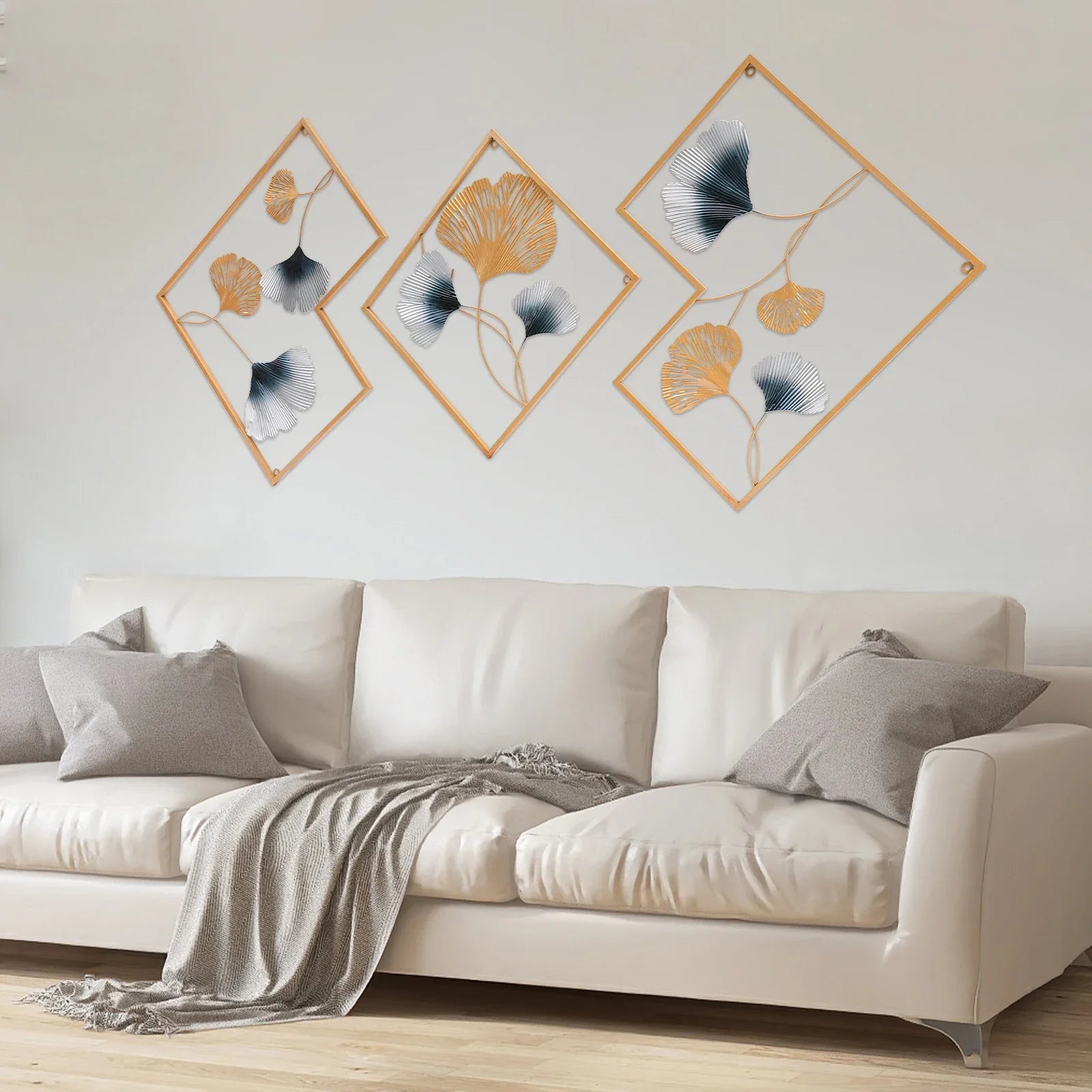 Transform your living space with our stunning 3D Wall Decoration set, featuring elegant metal leaf designs that enhance any room.