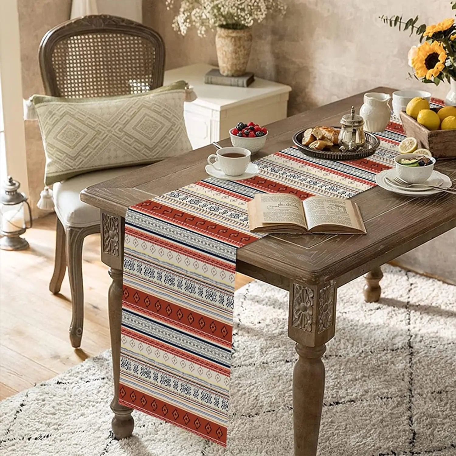 Elevate your table with a chic Boho Western Aztec vibe, a luxurious 100% linen table runner.