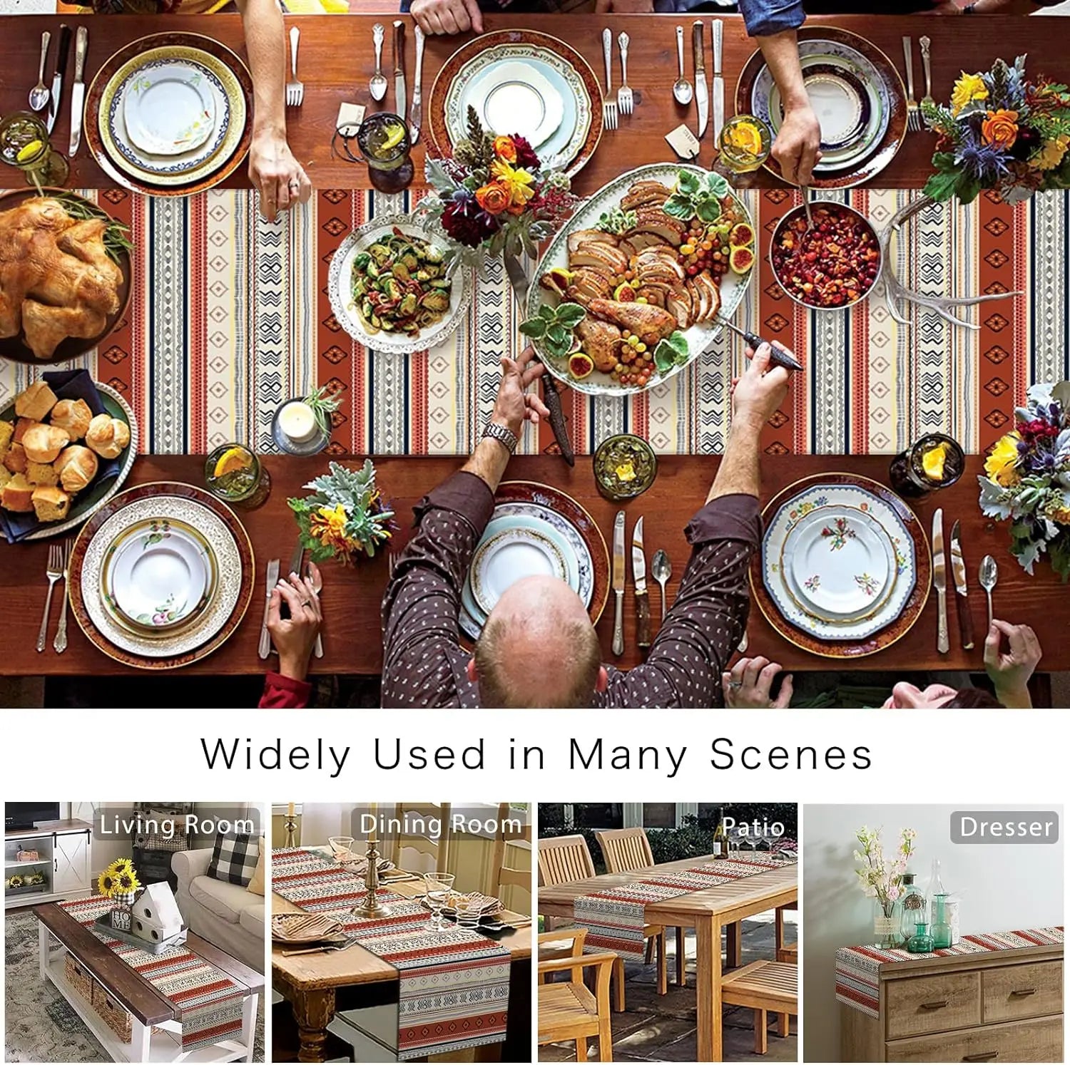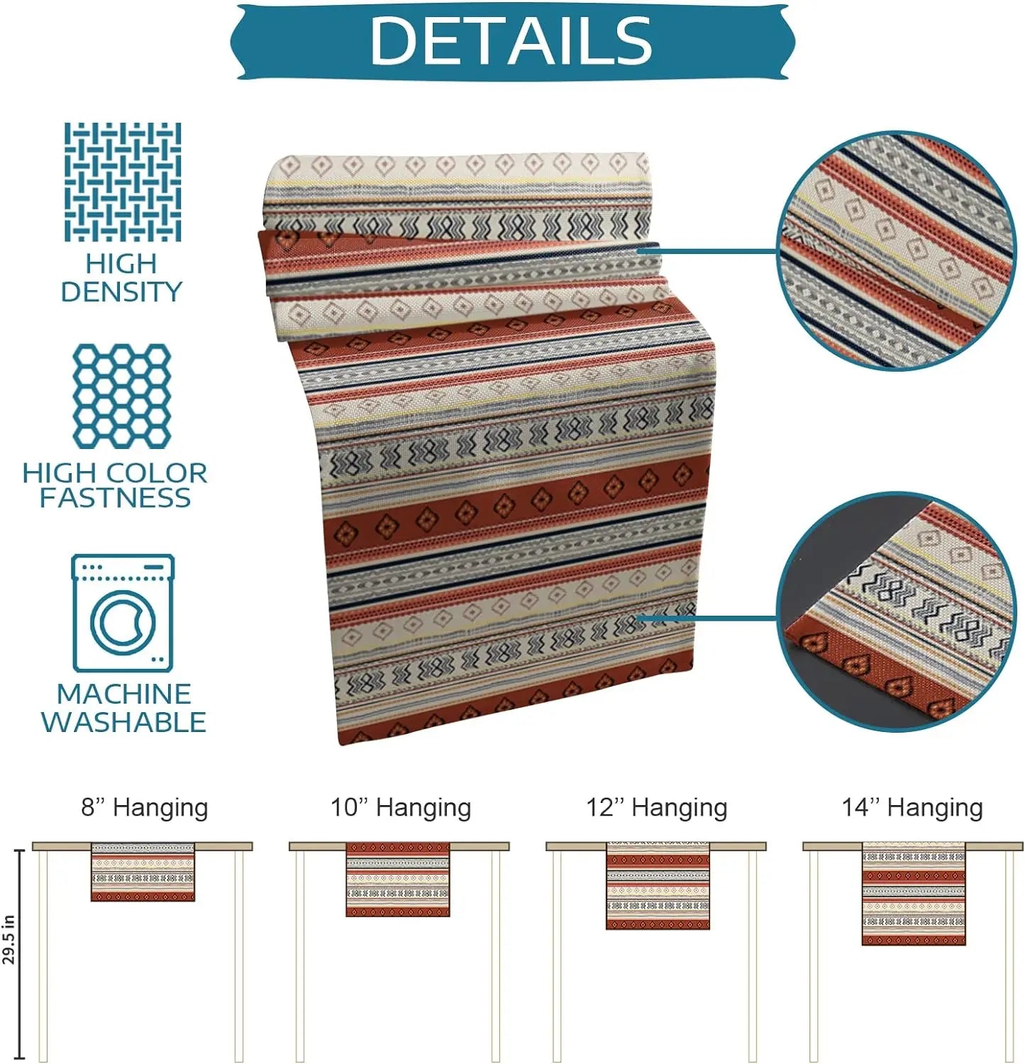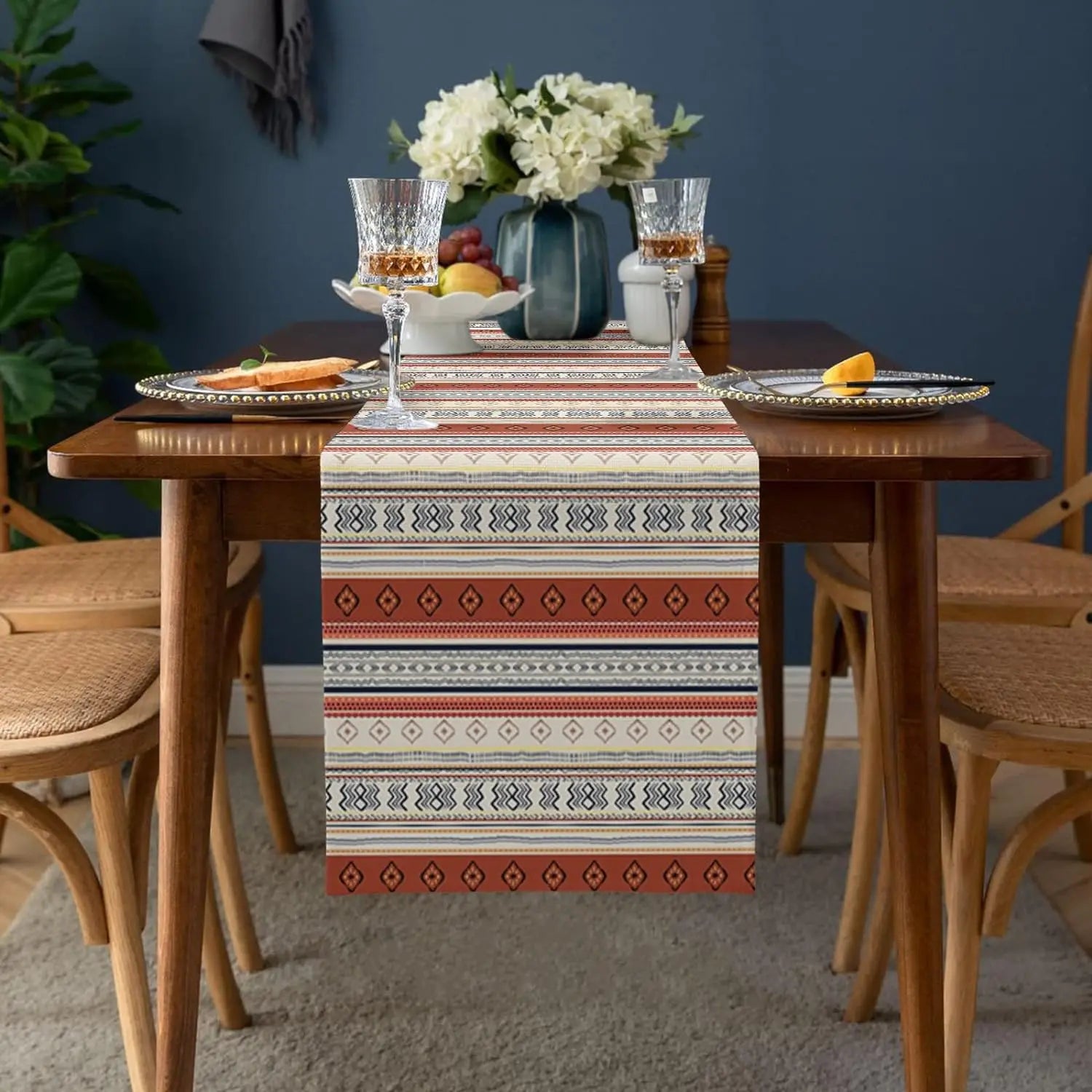 ZhejiangChoice Boho Western Aztec Linen Table Runner Decor