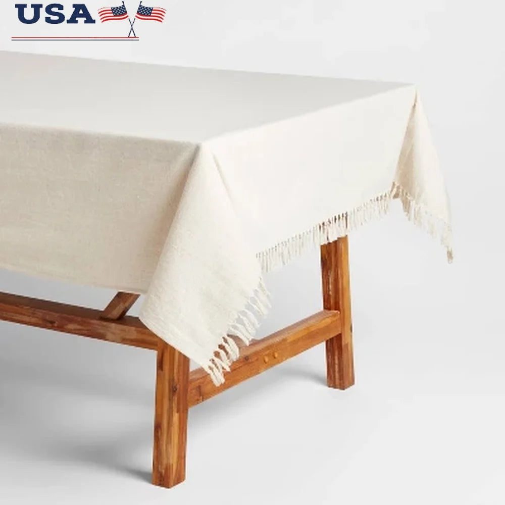 DUTRIEUXCN Cotton Linen Blend Tablecloth With Tassel Accents elevates your dining moments with a timeless mix of texture, practicality, and style, designed to simplify everyday entertaining.