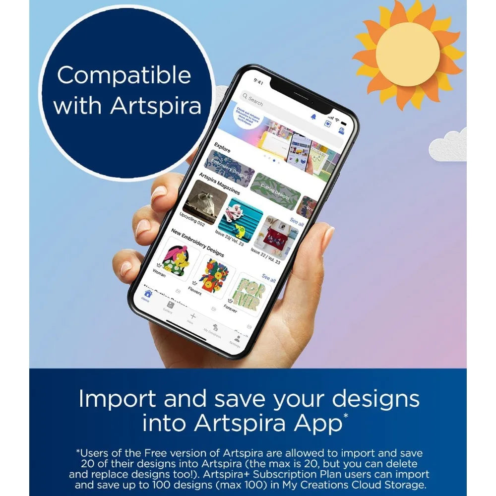 - USB Port: Expand your design library by importing your favorite patterns directly from a flash drive.