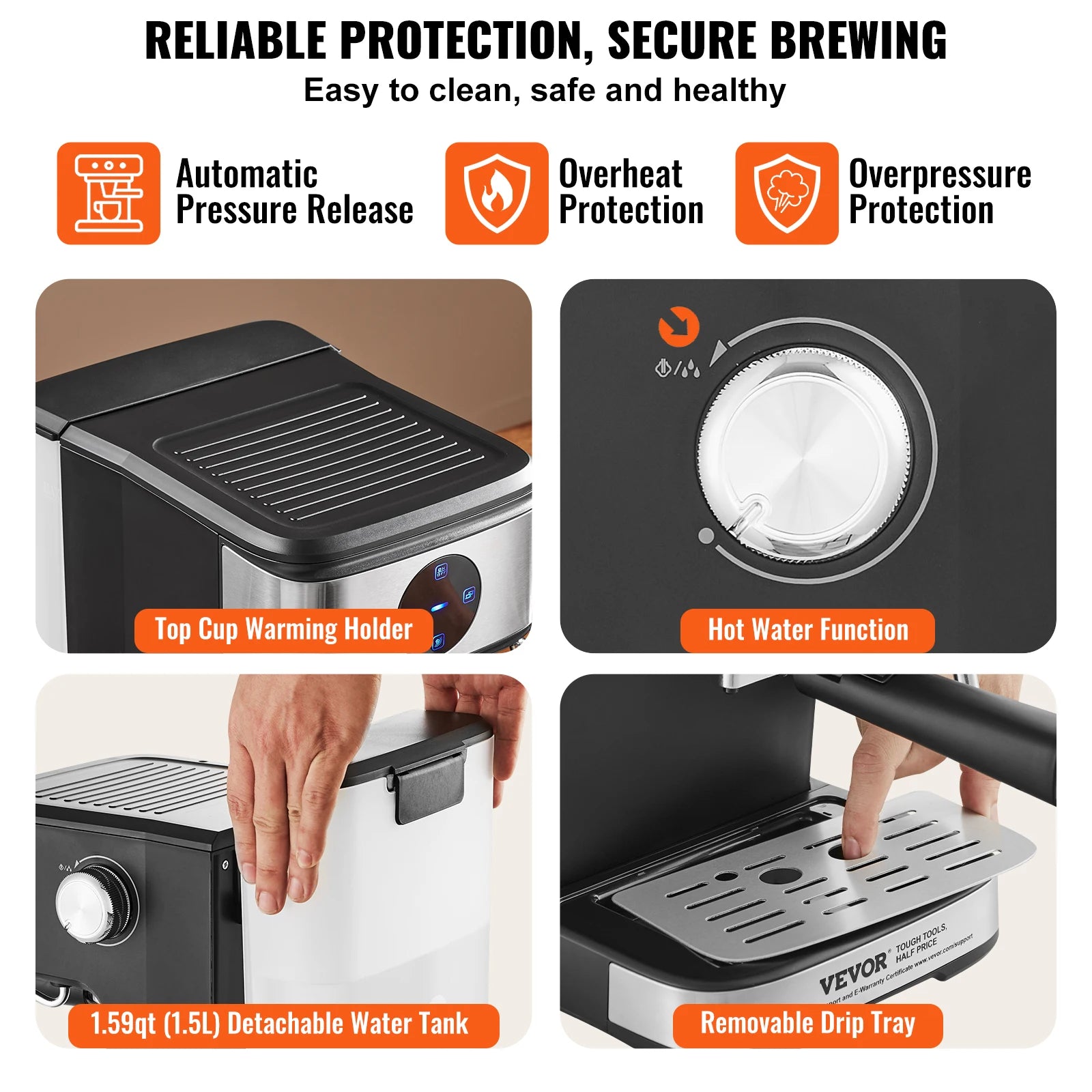 VEVOR Espresso Machine 15 Bar With Milk Frother Steam Wand